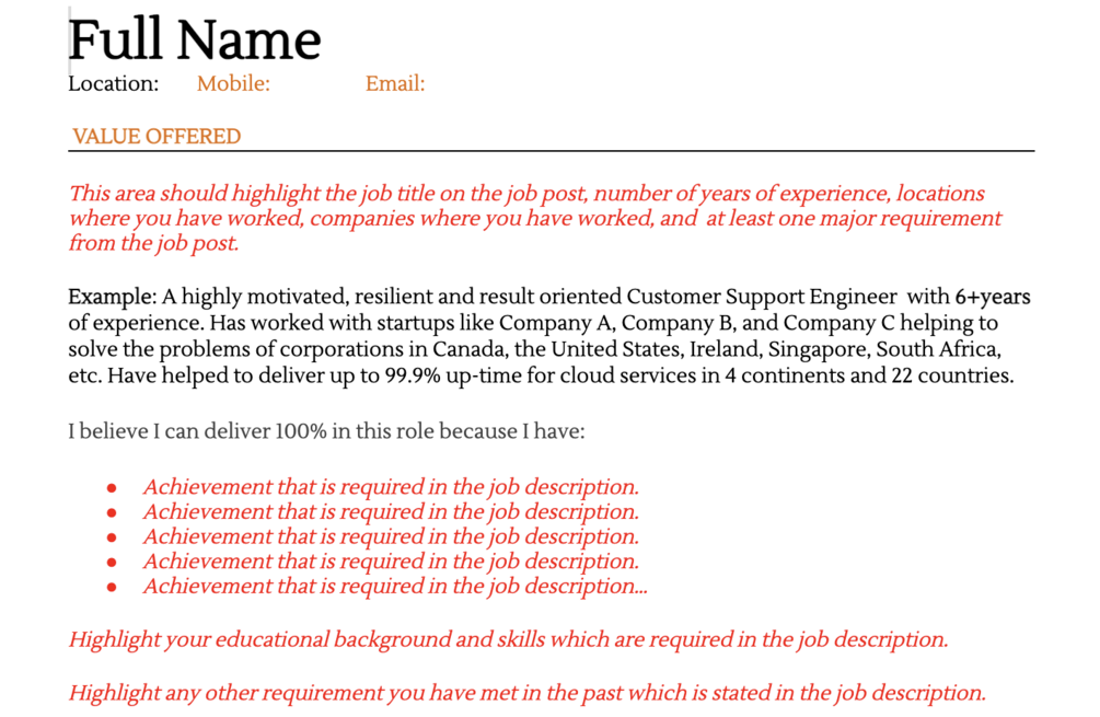 CV template for 10+ years of experience